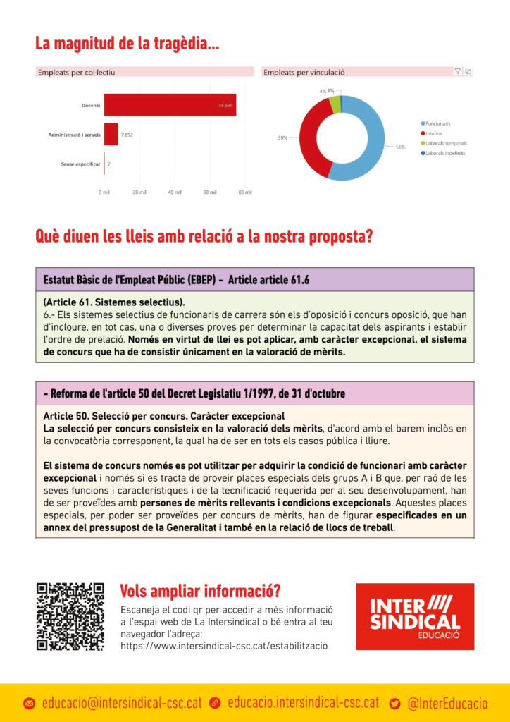 Aquests recursos han de servir també per a donar estabilitat a tots aquells col·lectius (interins, TEEI, personal educador o de suport, monitors) que estan més precaritzats dins del sistema educatiu.