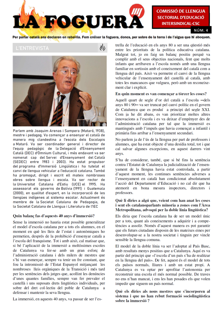 Un cop fetes totes aquestes consideracions, des de la Intersindical reiterem el nostre compromís amb la llengua catalana a l’educació, refermem la creença que la immersió lingüística és una garantia d’èxit educatiu per a tots els alumnes i una eina clau de cohesió social per al nostre país, i ens posem a disposició del Departament d’Educació per ajudar a fer avançar aquesta voluntat manifestada pels responsables educatius de tornar a fer del català la llengua central de l’educació a Catalunya, objectiu que requereix una actuació global i immediata.