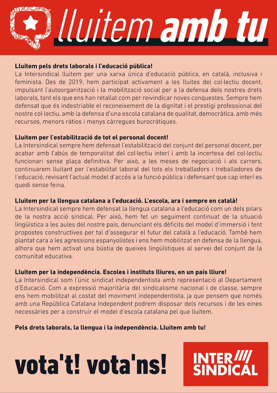 Ha començat la campanya electoral de tot els professionals docents no universitaris de Catalunya.
