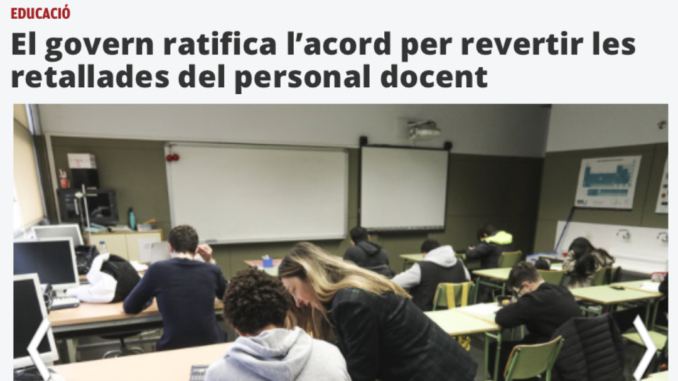 Fa unes hores la portaveu del Govern anunciava que el consell executiu ha aprovat aplicar el pacte del gener amb dos sindicats que tot just representen el 20% dels docents del país.