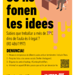 Davant la situació d’altes temperatures que viuran els centres educatius les properes setmanes, iniciem la campanya SE’NS FONEN LES IDEES! per lluitar, denunciar i pressionar contra l’incompliment de la normativa que regula les condicions ambientals dels llocs de treball.