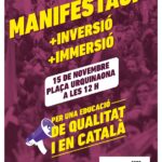 Per això, convoquem tot el personal educatiu a la manifestació del 15 de novembre, a les 12 h, a plaça Urquinaona (Barcelona), que acabarà amb una concentració a plaça Sant Jaume, davant del Palau de la Generalitat.
