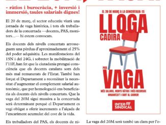 Convoquem tot el personal de l’educació concertada a la vaga del 20 de març. Des de La Intersindical exigim l’homologació salarial immediata, la reducció de ràtios i de la burocràcia per garantir la dignitat de la classe treballadora i la qualitat del sistema educatiu català.