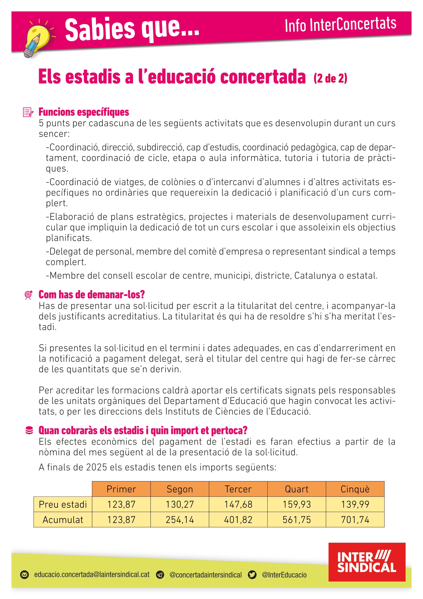 Píndoles informatives Publicacions prèvies: Estadis concertada 1 Estadis concertada 2 Estadis Llei de família i nous permisos Jornada laboral Hores lectives Comparteix això: Share on Facebook (S'obre en una nova finestra) Facebook Share on X (S'obre en una nova finestra) X
